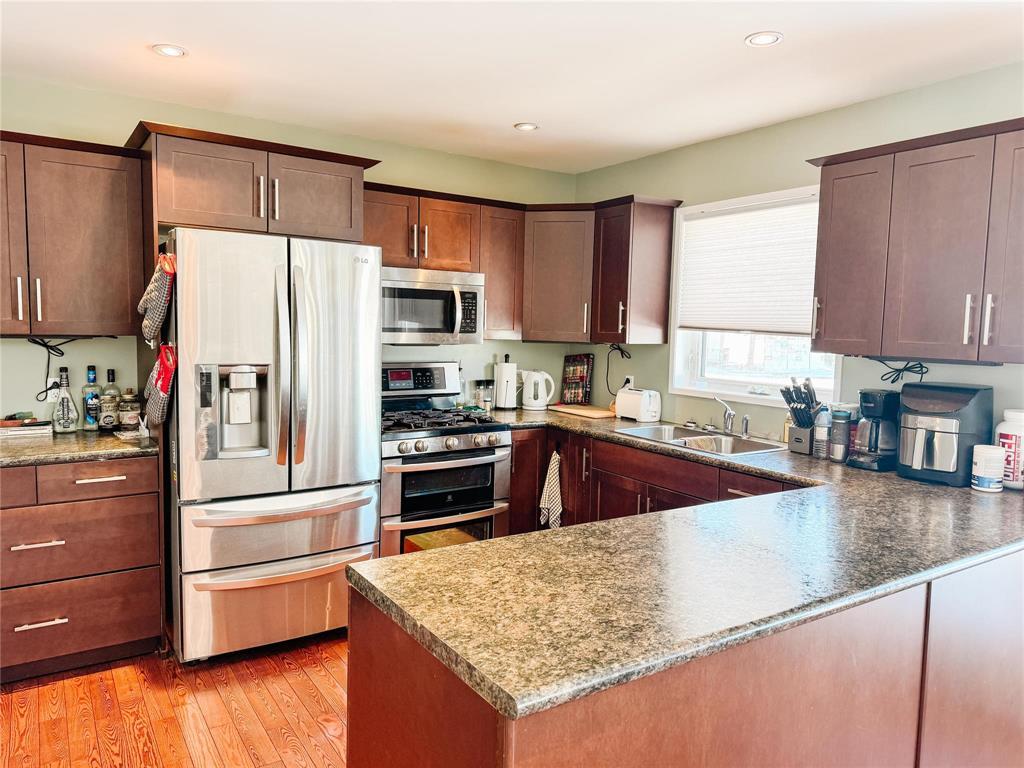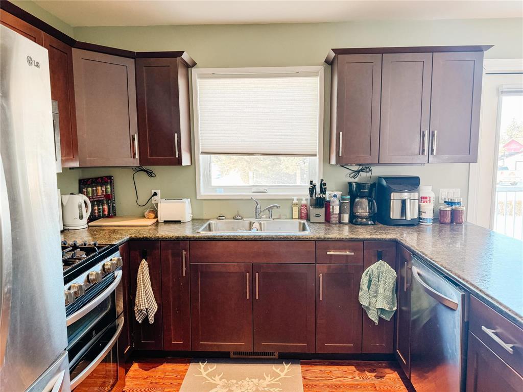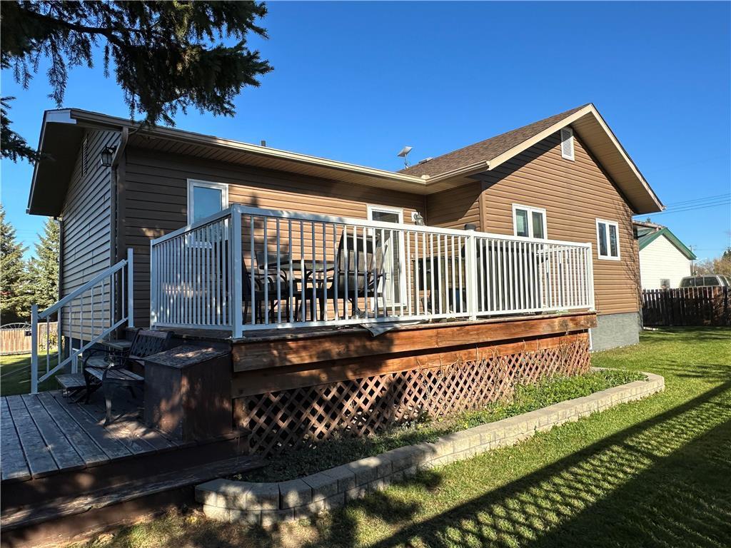 R32//Inglis/Built in 2012, this well-maintained bungalow offers modern comfort and thoughtful design throughout. The main floor features a bright kitchen with stainless steel LG appliances, a spacious dining area, and a cozy living room. You ll also find convenient main floor laundry, a full bathroom, and three bedrooms, including a primary suite complete with its own ensuite. Ash hardwood flooring adds warmth, while the primary bedroom features soft carpeting for added comfort. Triple-pane tinted windows enhance energy efficiency year-round. Enjoy outdoor living with garden doors leading from both the dining area and primary bedroom to two separate 7' x 14' maintenance-free decks, plus an additional 15' x 20' deck at the main rear entrance. The ICF block basement expands your living space with a large family room, an additional bedroom, and a 3-piece bathroom. The utility room houses a gas furnace, electric hot water tank, HRV unit, and offers plenty of extra storage. Situated on a fully fenced 75' x 125' corner lot, this property also features a 28' x 32' detached insulated garage. Additional highlights include custom blinds, central air conditioning, and town water and sewer services. (id:56420)