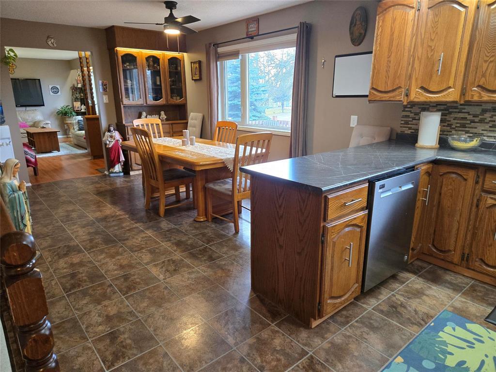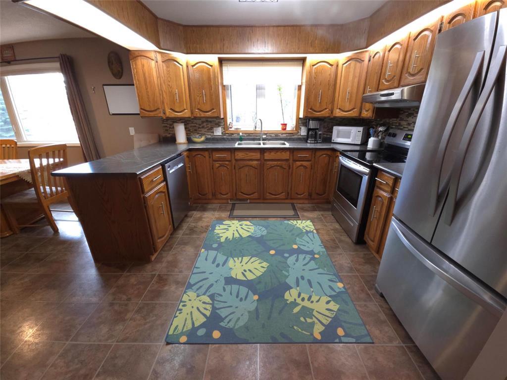 R32//Rossburn/Welcome Home! This well maintained 4-bedroom house on a quiet, family-friendly street is ready for its next owner. Park comfortably in the double attached garage and step inside to a bright, open-concept layout designed for everyday living. The kitchen, dining, and living areas are filled with natural light and face the west side of the home, creating a warm and inviting space. On the main level, you ll also find three additional bedrooms, a convenient laundry room with a half bath, and a full 4-piece bathroom overlooking the peaceful east-facing backyard. Most appliances are included (excluding the microwave and freezers), and a second entrance from the west-facing deck adds extra convenience. The fully developed basement offers even more living space with a fourth bedroom, a large recreation room, a utility room, and plumbing already in place for an additional bathroom if desired. Ideally located across from the hospital, close to the elementary school, and backing onto an open field, this property offers both comfort and convenience. Shingles replaced in 2023. Call today to book your private showing! (id:56420)