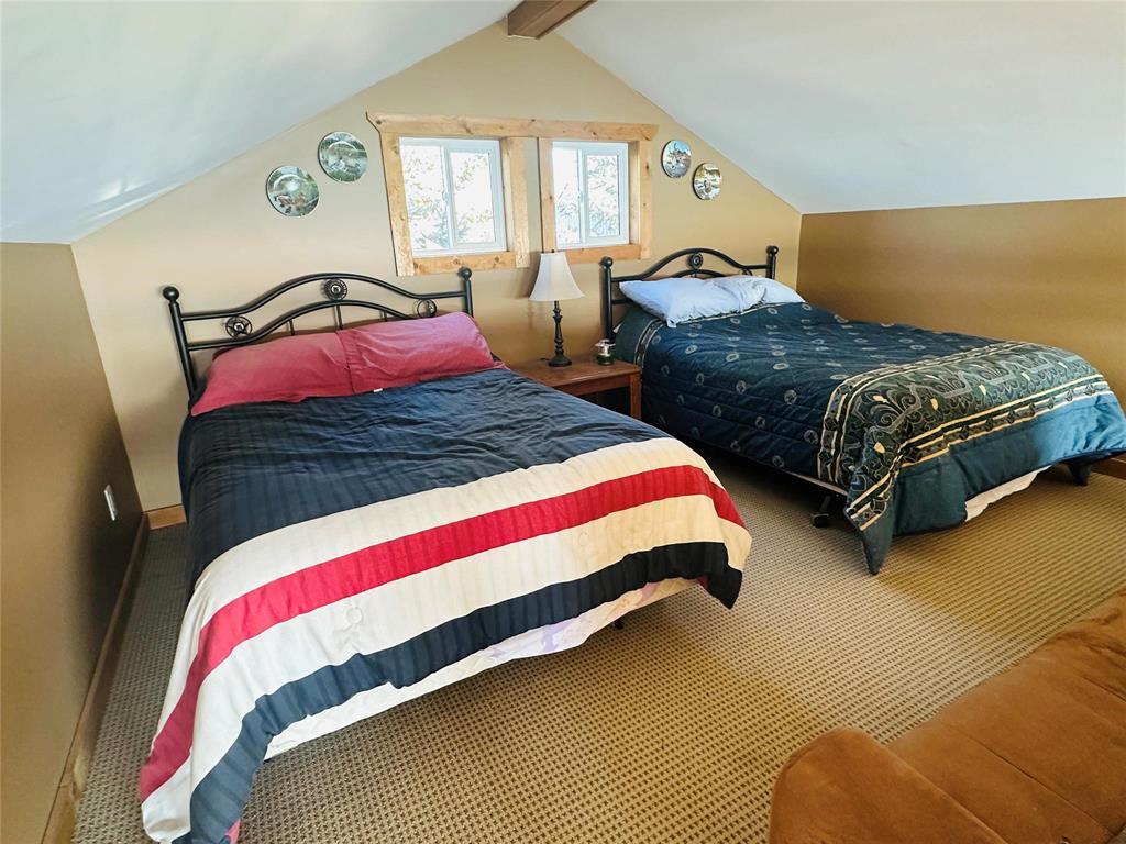 R31//Lake of the Prairies/Here is a rare opportunity to buy a "Lakefront Cabin" on Lake of the Priaries. It is located in the Bodnaruk Hill Subdivision only 13 miles from Roblin. The Cottage is 1 1/2 story with a loft. Main floor has living room, eat in kitchen, 3 bedrooms, 4 pc bath and a sunroom. Upper level has a loft that is used a bedroom. Great feature is the wood burning stove in the living room. 14' x 22' Single detached insulated heated garage. Concrete parking pad area. Pole shed for a place to park the ponton boat and the boat. 2000 gallon fibreglass septic holding tank. Has a well for water. Inclusion: Fridge, stove, microwave, window coverings. Most furnishings included: 5 beds. Hide a bed. Night stand. 2 wardrobes. Couch. Love Seat. 2 wooden chairs. Wood sitting bench. Tv and TV stand. Coffee Table. Wall unit air conditioner. Kitchen table and 4 chairs. Sunroom - Table & 6 chairs. Love seat. Window coverings. 100 amp panel 114' x 196' lot - 22,604 total square feet. Stairs down to the water included. Wood shed by garage. Prairie Lake Lodge 18 hole 3 park golf course less than 10 minutes away. 2025 Gross Taxes: $1995.24 (id:56420)