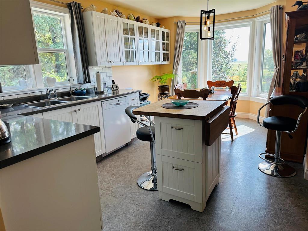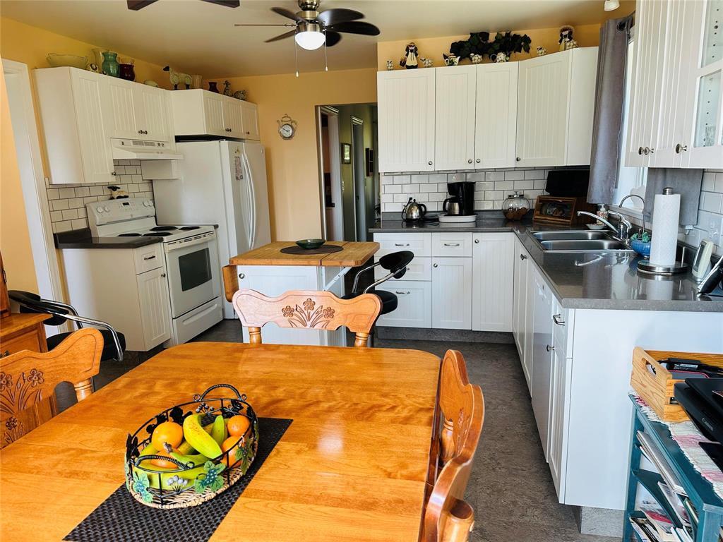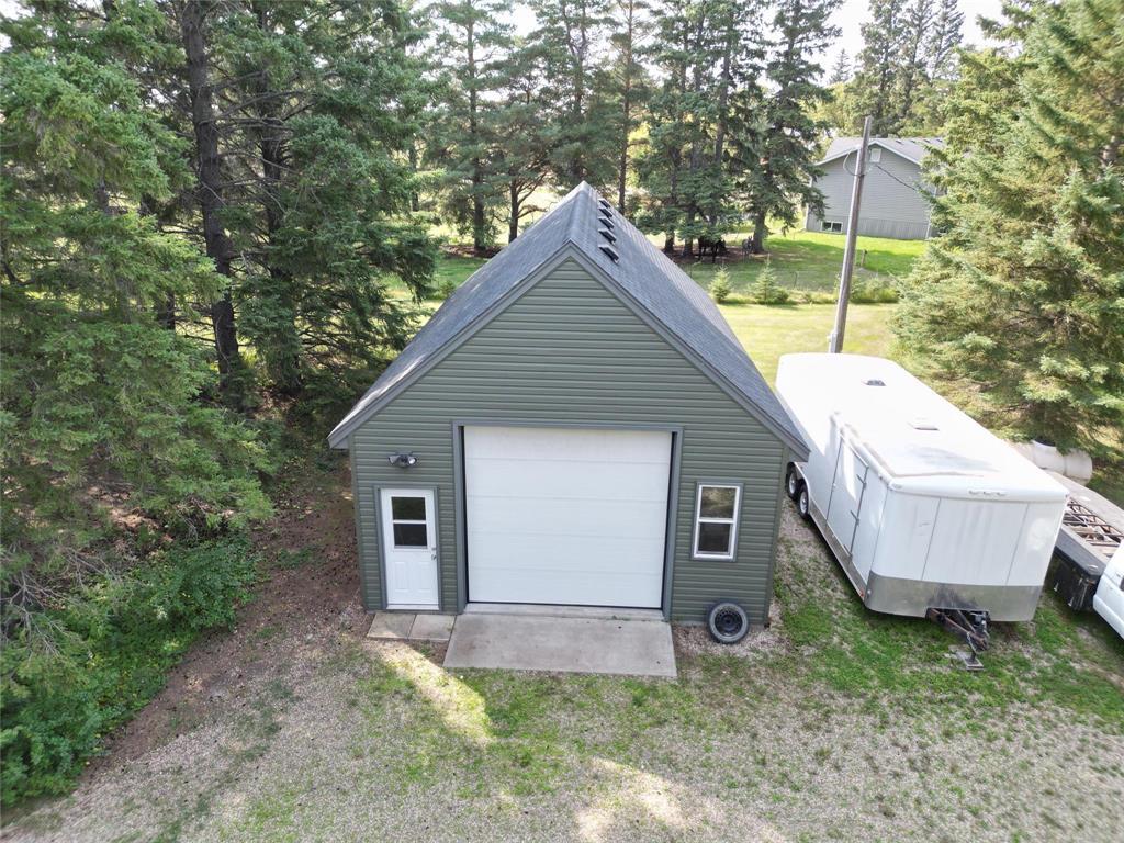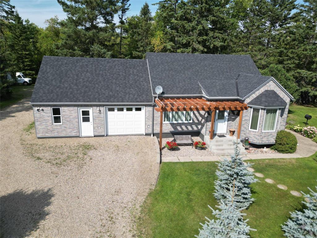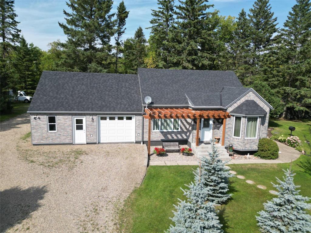 R32//Russell/This acreage has been well maintained & has 2.06 acres & is located only 6 miles south of Russell just off of Highway #83. This 1,269 SF home has been totally reno'd inside & out. Main floor has living room, kitchen, dining area, bedroom, 3 pc bath, laundry room. Kitchen has white kitchen cabinets with island & dining area has a wonderful bay window. Upstairs is where you will find the primary bedroom with walk in closet & a 3 pc ensuite. 3 dormers were put in on upper level offering more natural light. Ample closet space. Full basement is an open area and is where you will find the electric forced air furnace, water softer, 200 amp panel, reverse osmosis, central vac. Exterior has vinyl siding and brick. 12' x 12' deck. Asphalt shingles were new 2015. Double attached garage is divided into 2 separate areas. 20' x 34' Detached shop/garage, 2"x6" insulated, 12' ceiling, Elec FA furnace, extra storage. Water supply comes from a well. Septic system is a field. Inclusions: Fridge, stove, dishwasher, microwave, washer, dryer, window coverings, Bell satellite dish, 54" - 26 HP Toro Riding Mower, black shelves in basement. 12' x 20' and 6' x 10' storage sheds. 2025 Gross Taxes: $1,383.98. (id:56420)